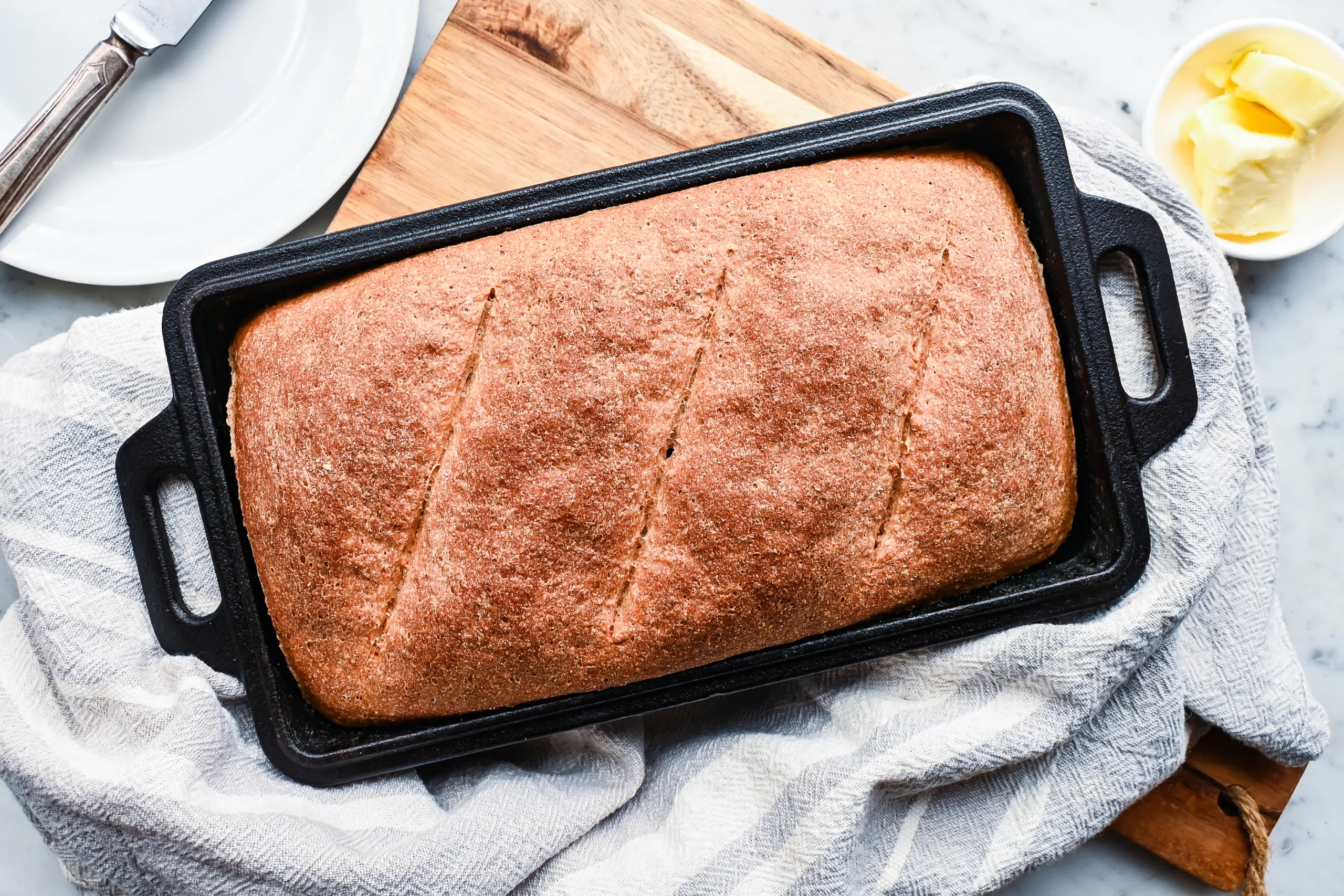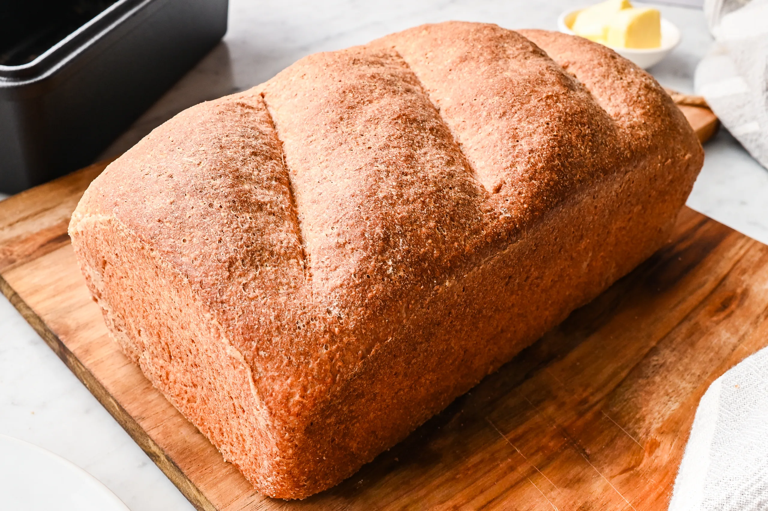 - Texture: Soft, hearty, and tender with a fine whole grain crumb