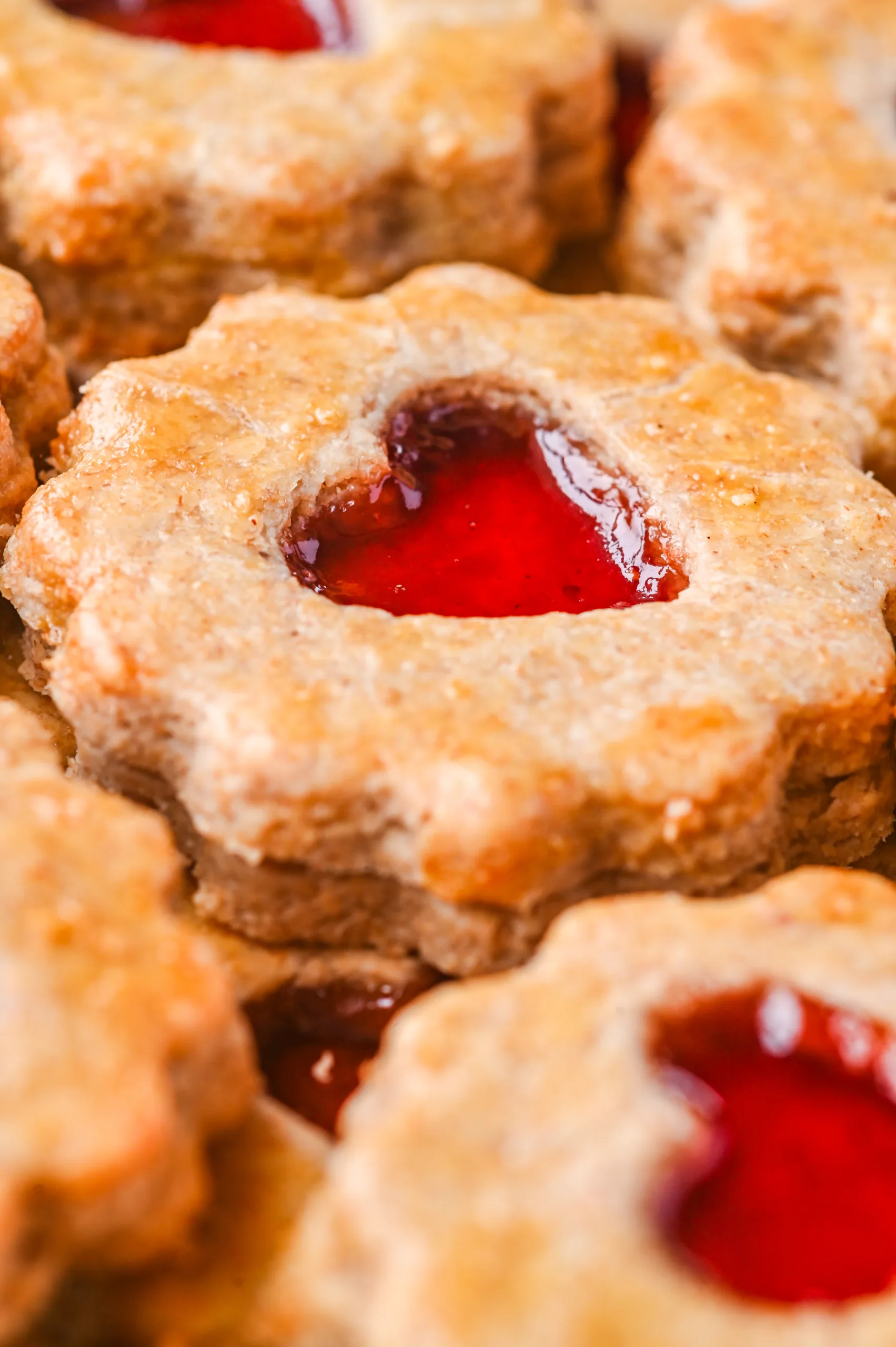 - Use linzer cookie cutters to cut out the bottoms and then the tops with the center cut out to showcase the jam.