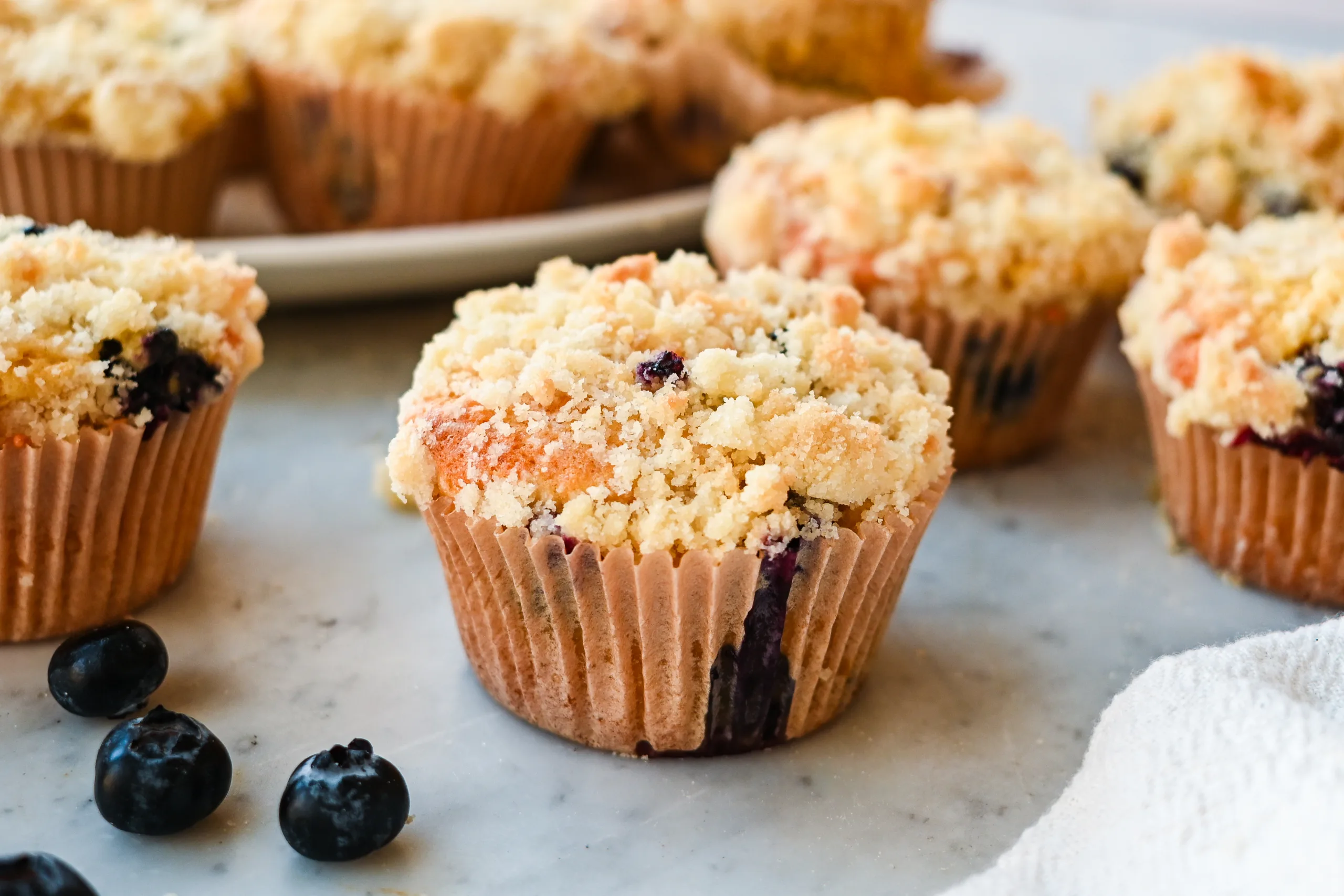 Sourdough Discard Blueberry Muffins with Crumb Topping